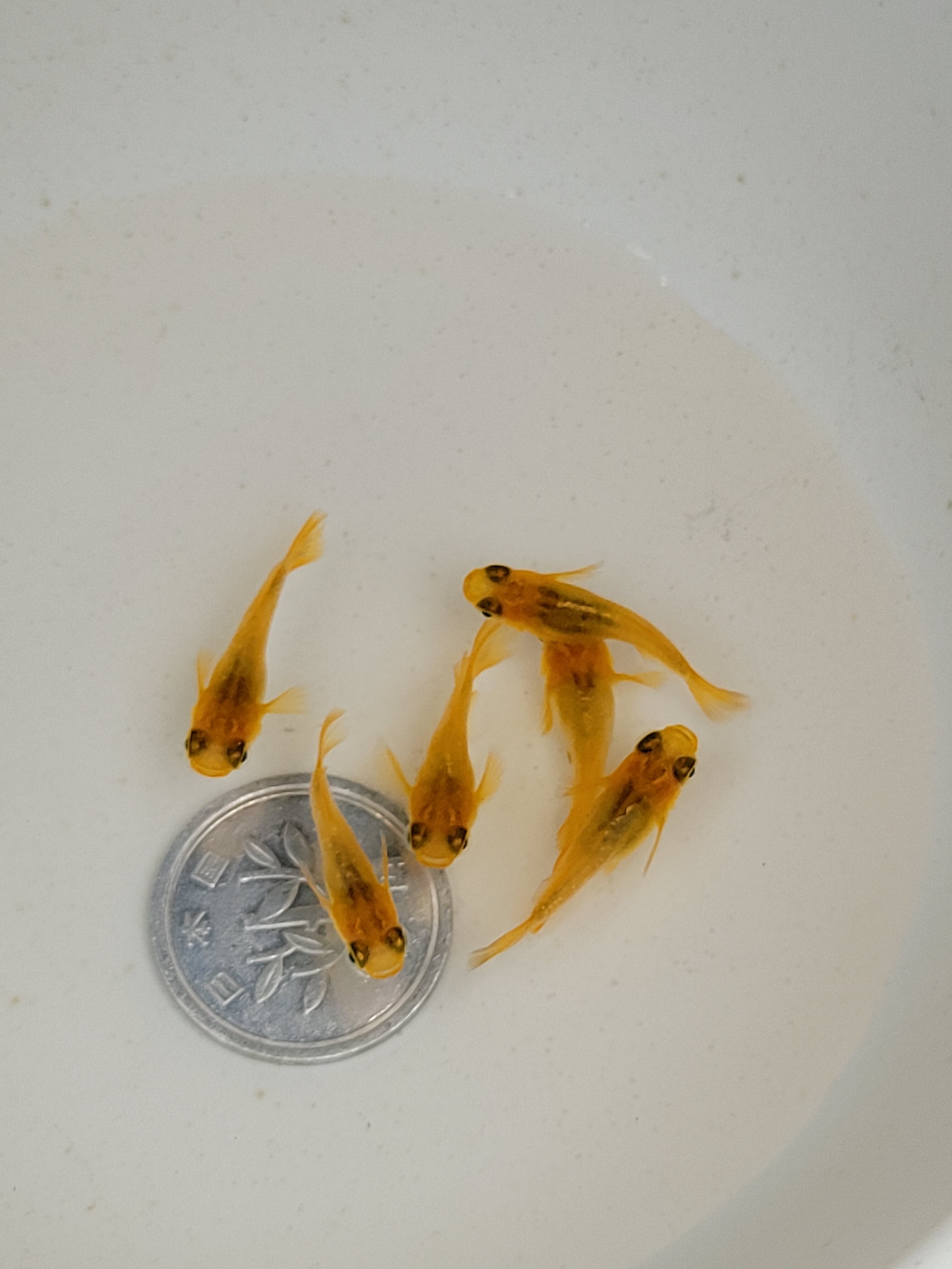 てんてんの黄金べっ甲めだかは、ショート体型 (ダルマ、半ダルマ等) が出やすくなるように、選別、親決め、養殖、累代を行なっていますのでとてもオススメです♪♪