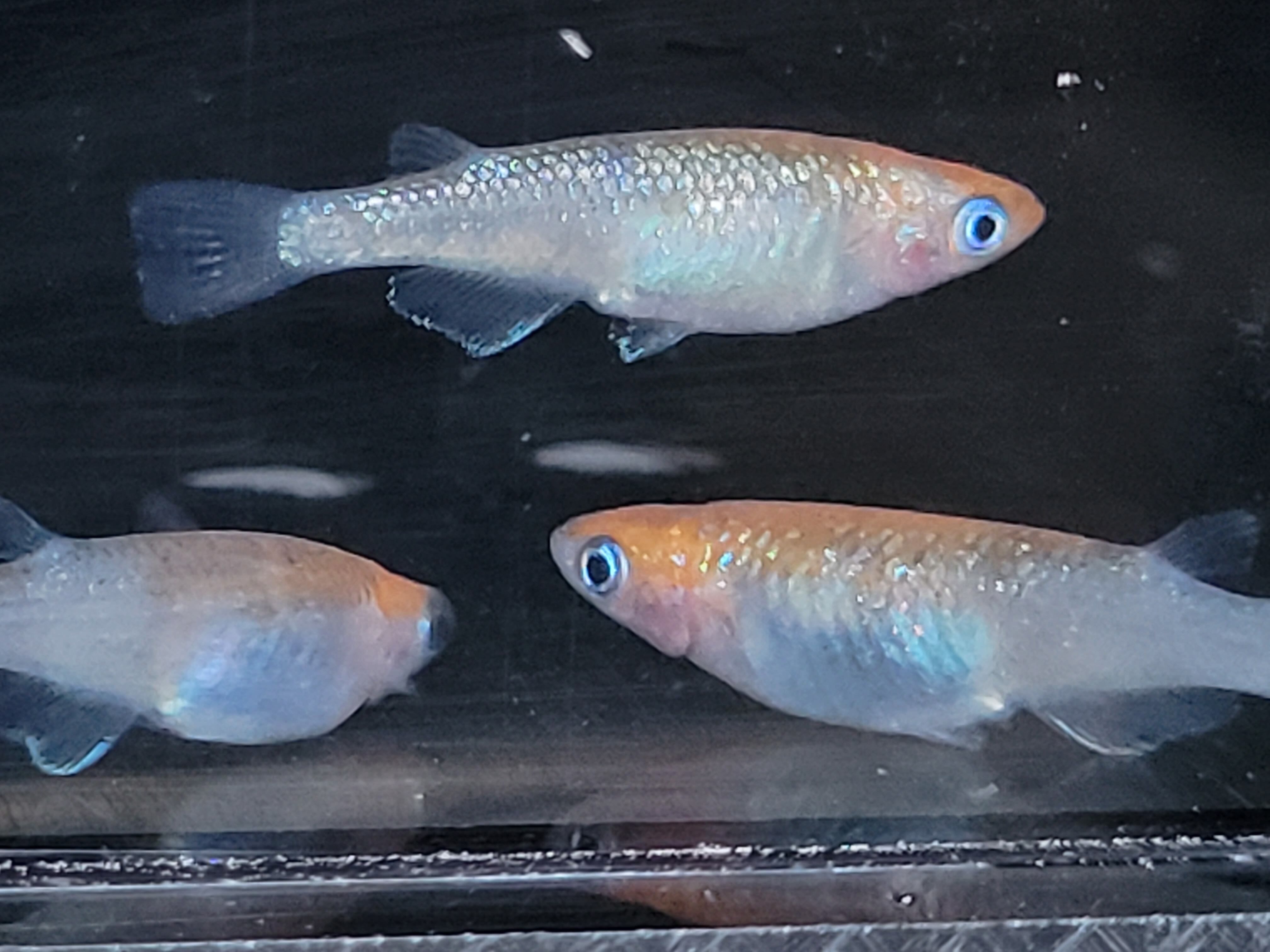 丸玄さん直系で、柿色と青いラメが美しいメダカです。