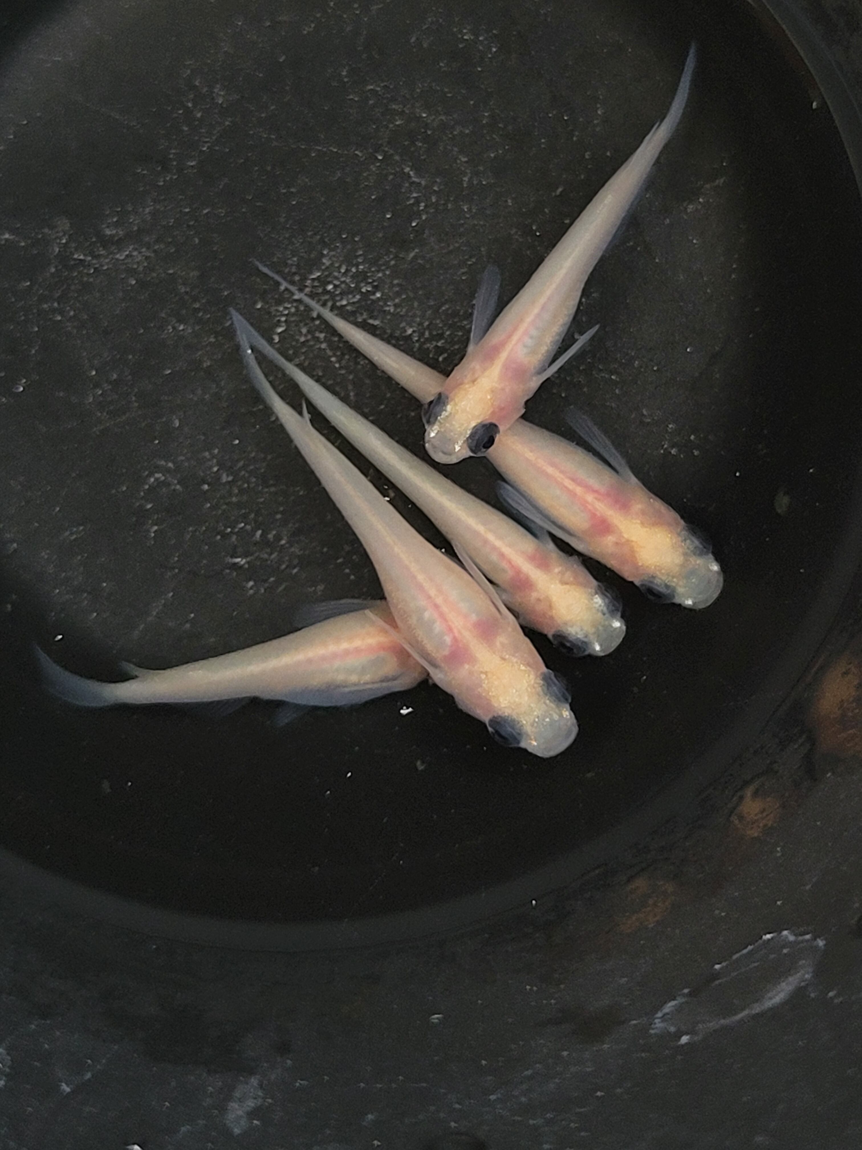 パンダのように目が黒くてかわいいメダカです。