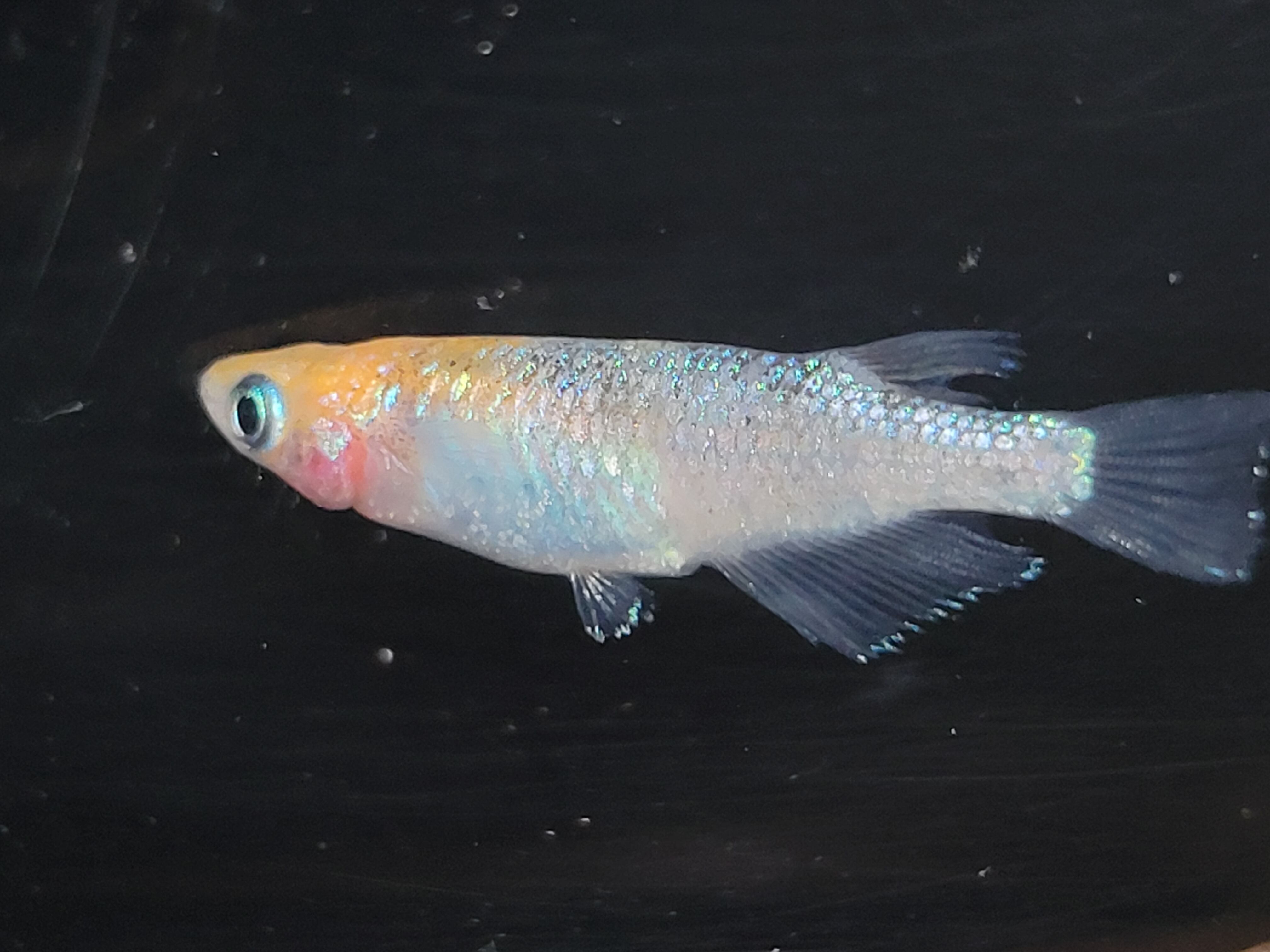 丸玄さん直系で、柿色と青いラメが美しいメダカです。