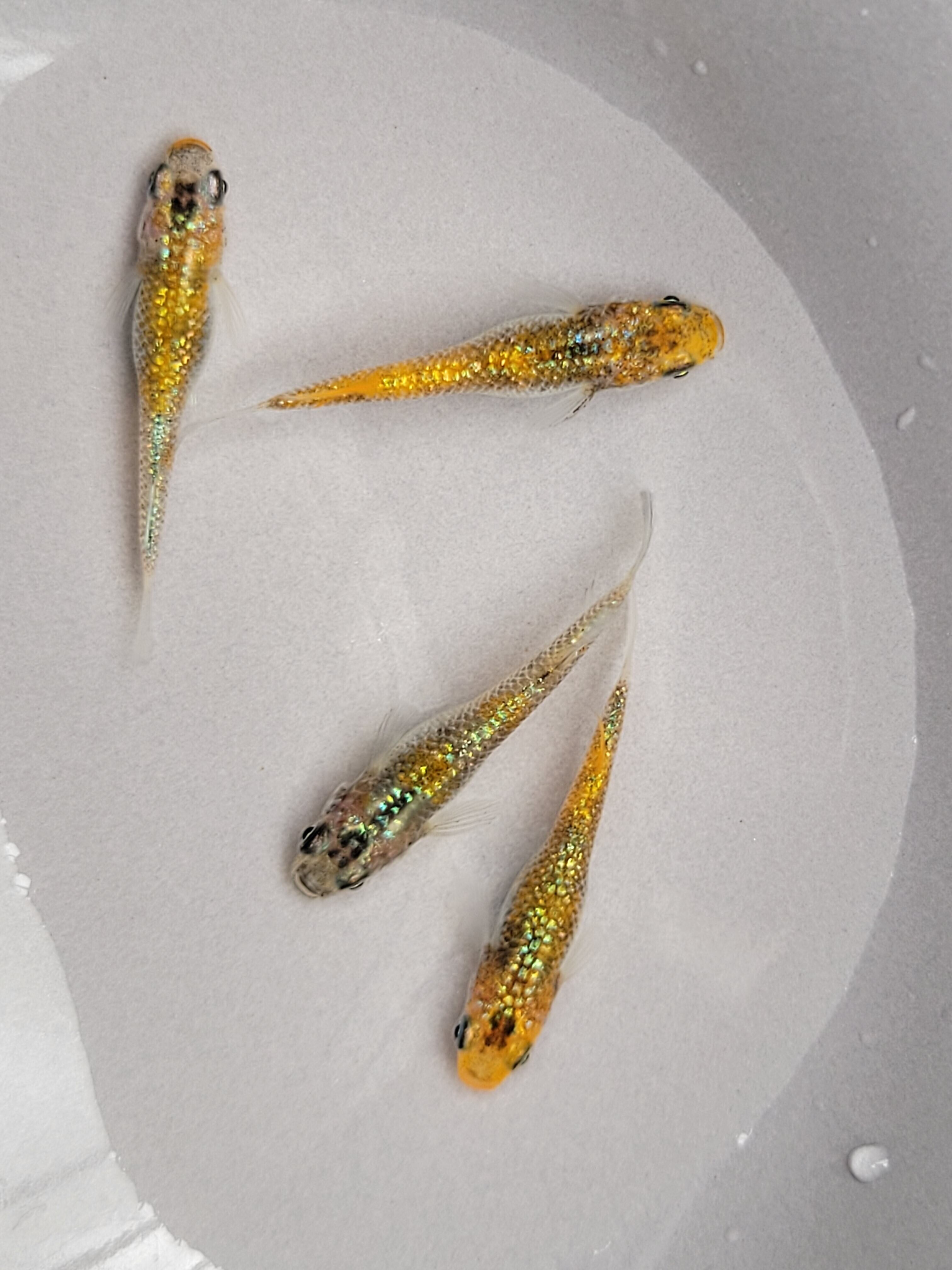 丸玄さん直系で、柿色と青いラメが美しいメダカです。